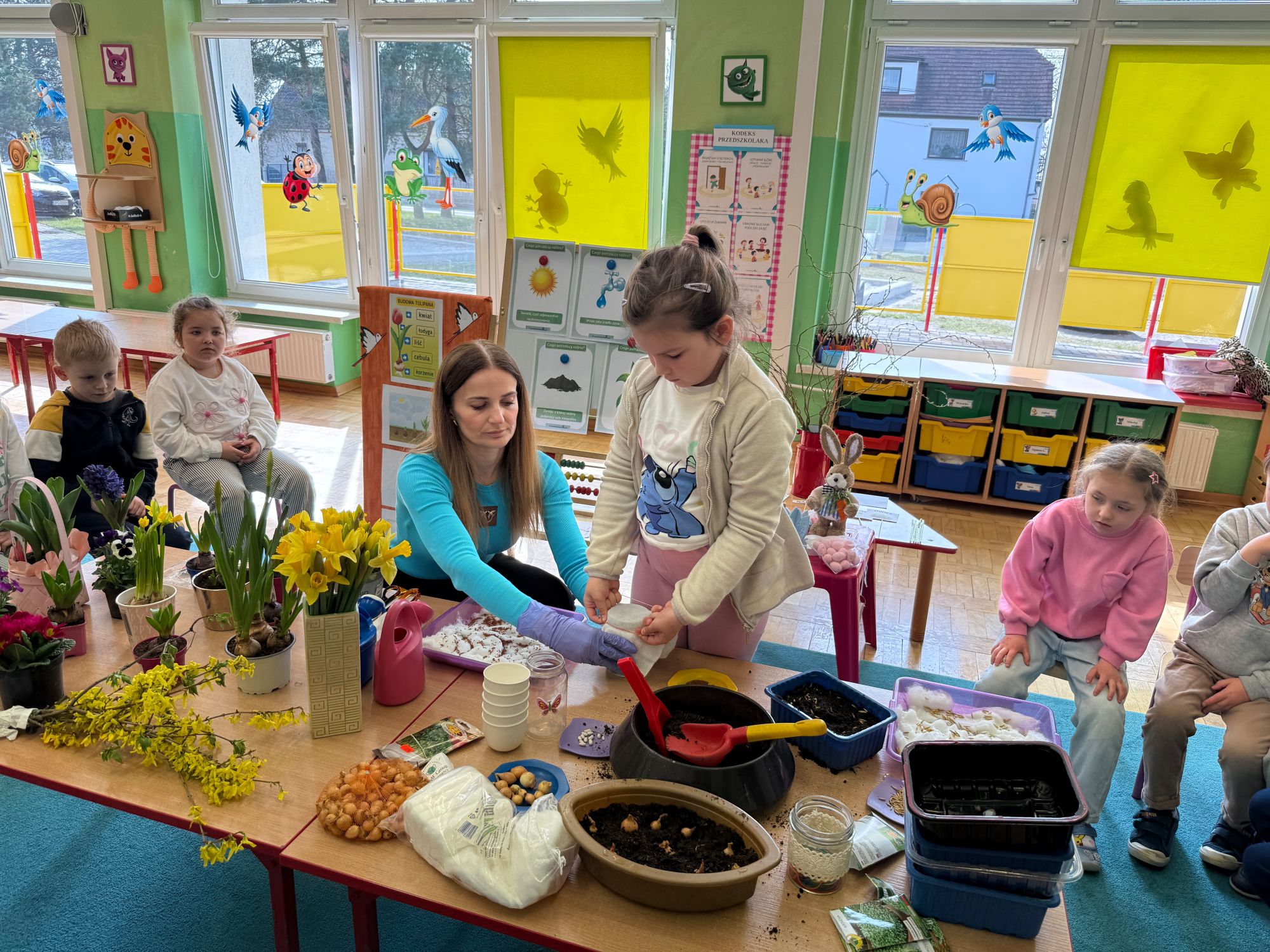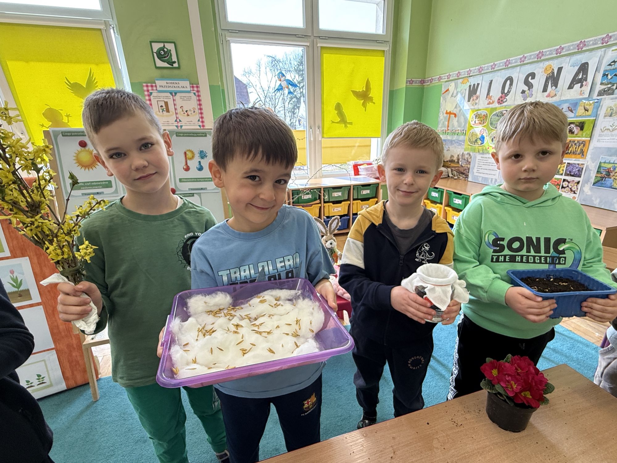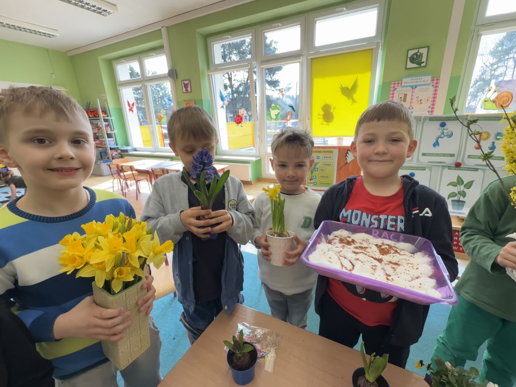 Serdecznie dziękujemy Rodzicom za wsparcie w tworzeniu kącika przyrodniczego w sali. Dziękujemy za przyniesione kwiaty i dekoracje, które sprawiły, że stała się ona jeszcze bardziej radosna, kolorowa i pełna wiosennego uroku.