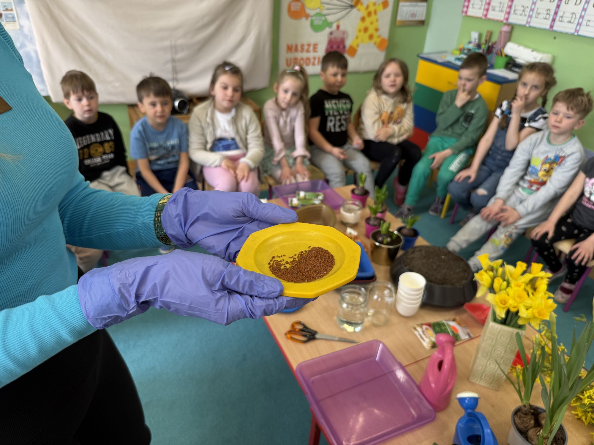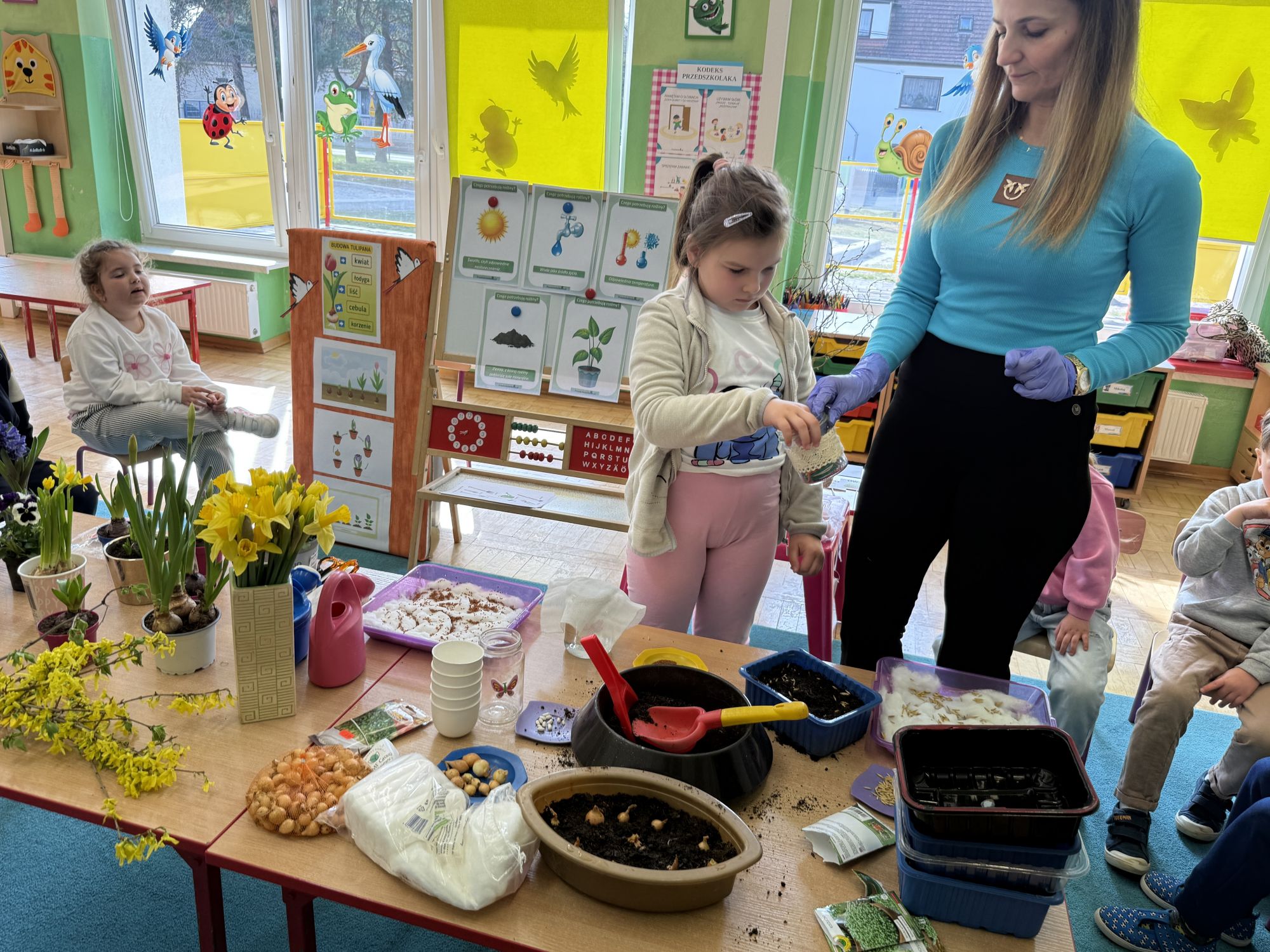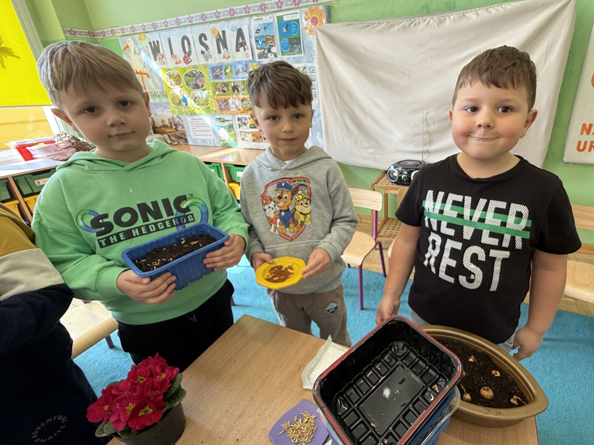 Serdecznie dziękujemy Rodzicom za wsparcie w tworzeniu kącika przyrodniczego w sali. Dziękujemy za przyniesione kwiaty i dekoracje, które sprawiły, że stała się ona jeszcze bardziej radosna, kolorowa i pełna wiosennego uroku.